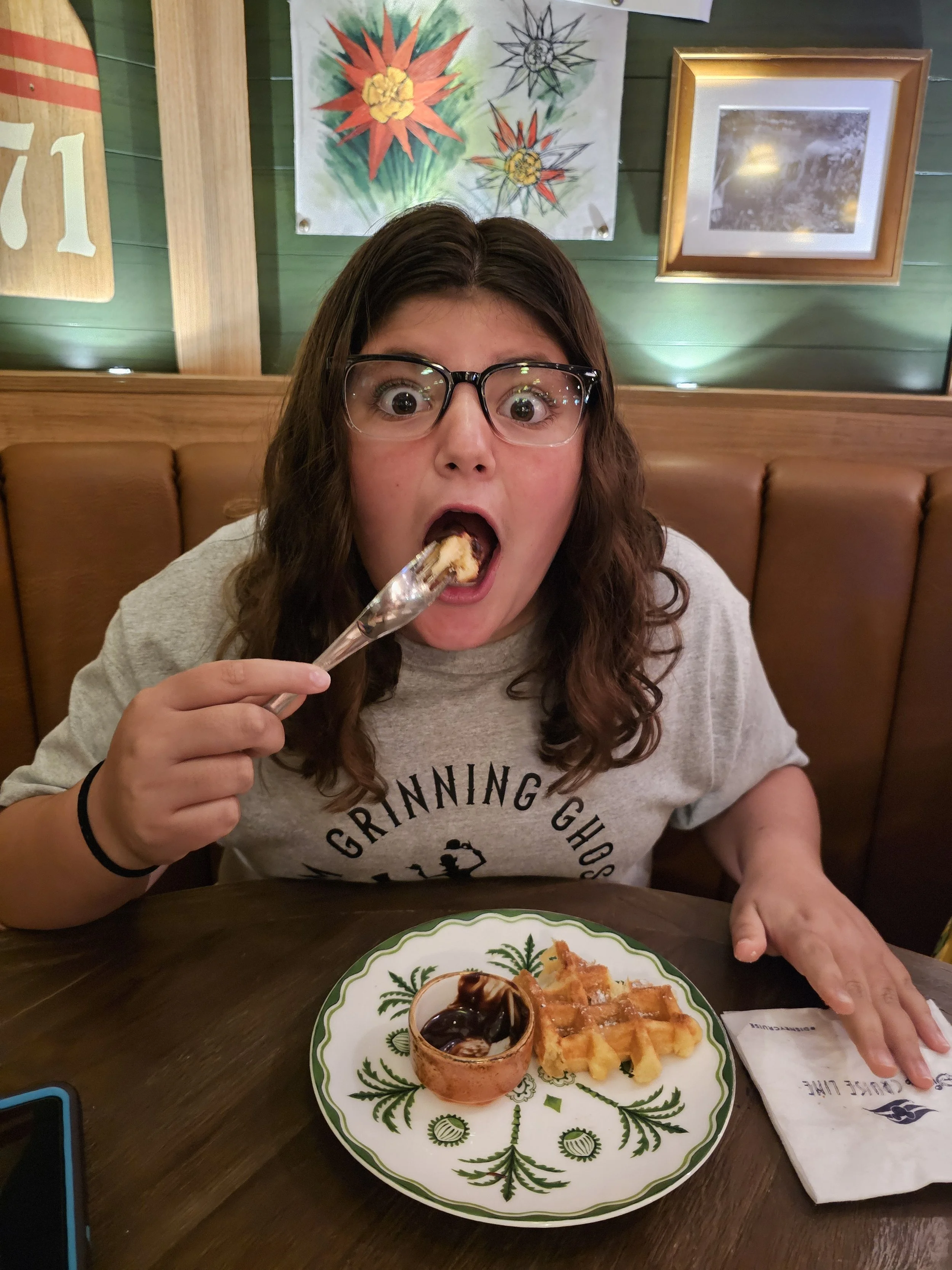 Hi! I’m Emily Claire, I’m 12, and I LOVE cruising with Disney Cruise Line. Like… love love it. And on the newest ships, the Disney Treasure and the Disney Destiny, there is something that completely blew me away: the Haunted Mansion Parlor.