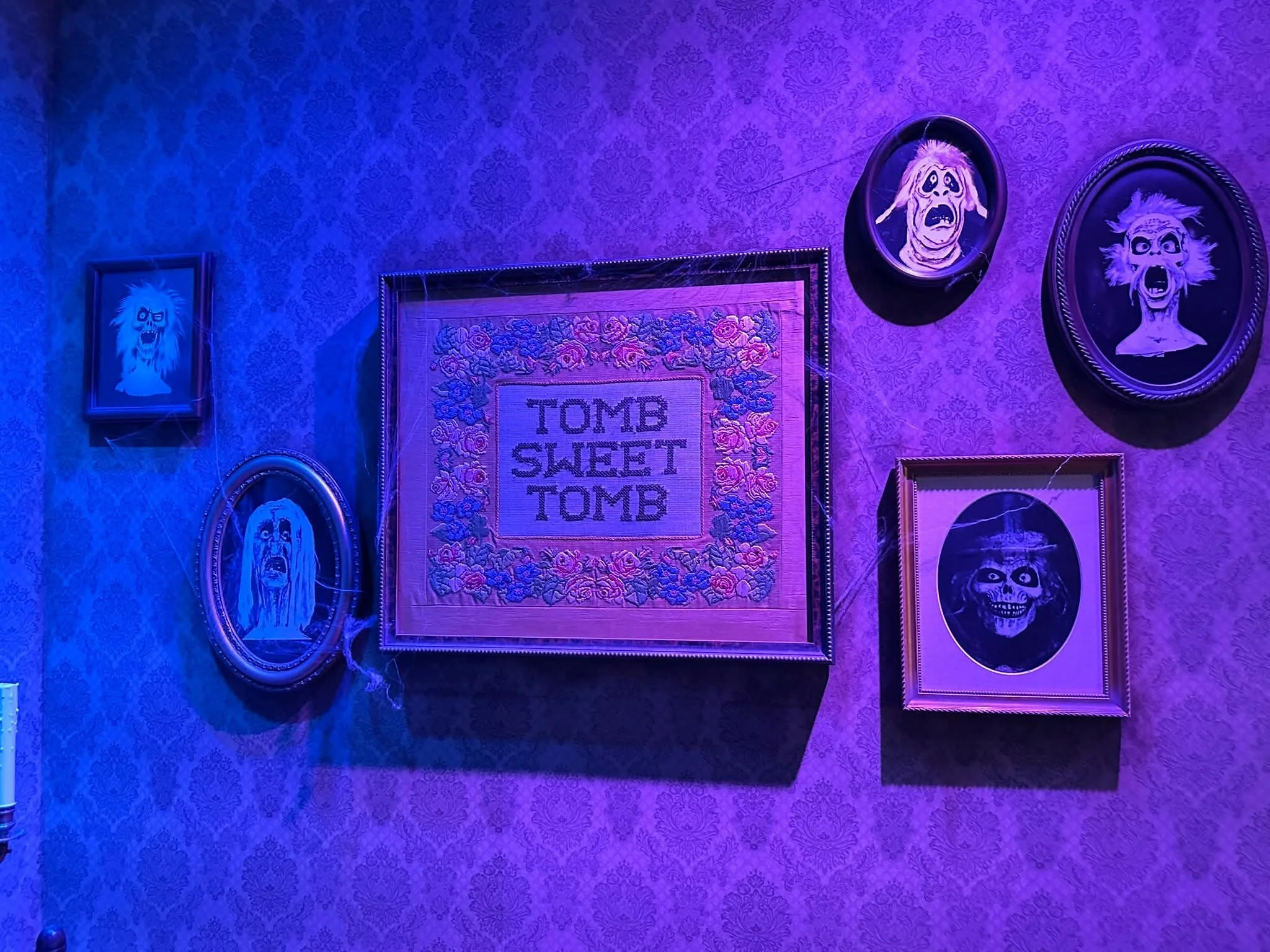 First of all, the atmosphere is everything. The second you walk in, it feels like you’ve stepped right into the ride. The lighting is moody and mysterious, the décor is detailed and dramatic, and there are little surprises everywhere. It’s elegant but spooky at the same time, which is honestly such a vibe. I could have stayed in there for hours just looking around at all the details.